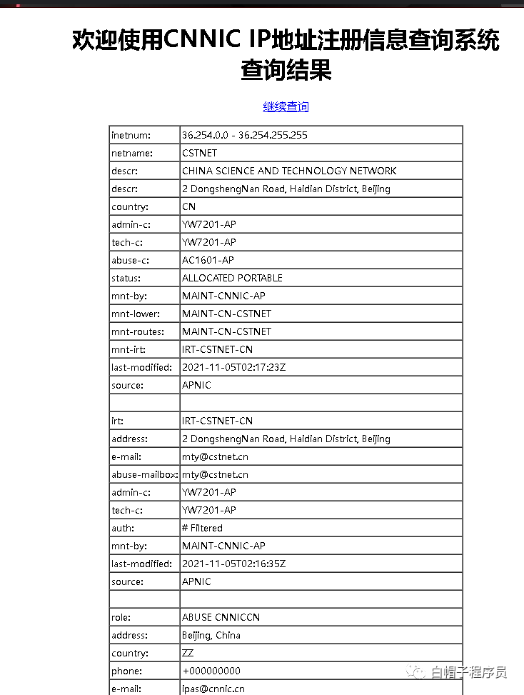 部分whois查询存在隐藏信息,可以在其他站点查询。