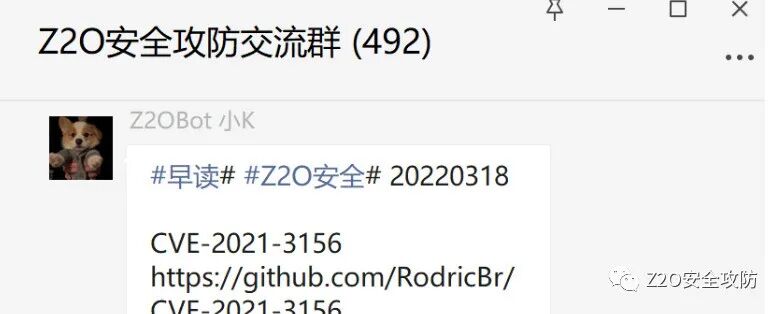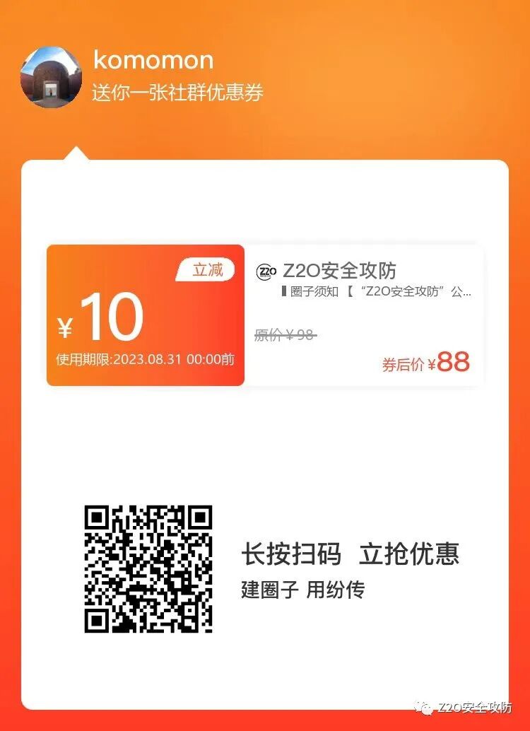 关注公众号回复“加群”,添加Z2OBot 小K自动拉你加入Z2O安全攻防交流群分享更多好东西。
