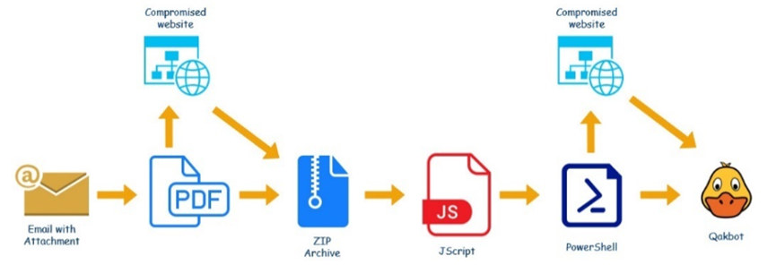 4 月初,研究人员发现使用 QBot 家族银行木马(又名 QakBot、QuackBot 和 Pinkslipbot)的攻击显着增加。恶意软件将通过以不同语言编写的电子邮件信件传播——它们的变体以英语、德语、意大利语和法语出现。这些消息基于攻击者可以访问的真实商业信件,这使他们有机会使用自己的消息加入通信线程。作为一般规则,此类信件会以合理的借口敦促收件人打开随附的 PDF 文件。例如,他们可能会要求提供与所附申请有关的所有文件,或者根据所附的成本估算来计算合同价值。