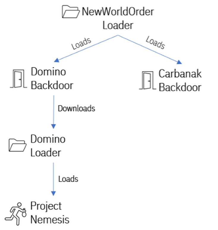 最近观察到的 Dave 样本被发现加载了 Domino Backdoor。这个新的后门收集基本的系统信息,然后将其发送到 C2,并作为回报接收 AES 加密的有效负载。在大多数情况下,接收到的有效载荷是第二个加载程序,被发现与 Domino Backdoor 有代码重叠,将其称为 Domino Loader。此加载程序在其资源中包含一个加密的有效负载,它使用 AES 对其进行解密。解密的有效载荷是一个 .NET 信息窃取器,它将自己标识为“Nemesis Project”。Domino 后门旨在为加入域的系统联系不同的 C2 地址,这表明功能更强大的后门(例如 Cobalt Strike)将被下载到更高价值的目标上,而不是 Project Nemesis。