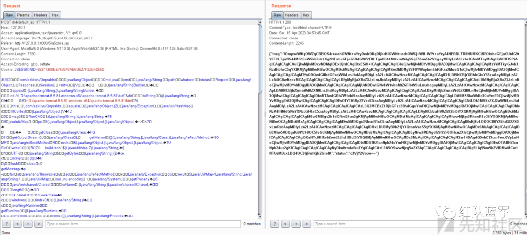 响应体其实也是明文的固定格式的json类型 {"msg":"执行结果base64编码","status":"c3VjY2Vzcw=="}