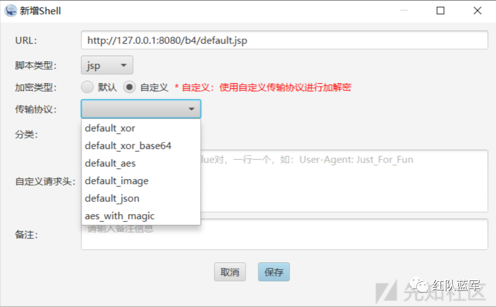 冰蝎4内置了如下几种传输协议,传输协议可以理解为流量的加密方式
