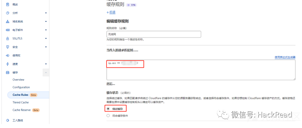 输入 ip.src == xx.xx.xx.xx,该 IP 是 C2 服务器真实 IP,再选择绕过缓存,最后保存。
