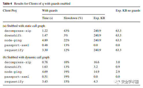 启用守卫机制,能够明显看到开销增大,这是必然的,因为这相当于对文件进行了多步处理,同时由于代码的变更,使得缩减效果变差,具体结果如表 所示。而对安全漏洞的检测,在测试项目上确实发现了 3 个并且得到验证的漏洞,但可能存在漏报情况,而且拦截的主要是敏感函数,这部分也是安全漏洞的主要成因。