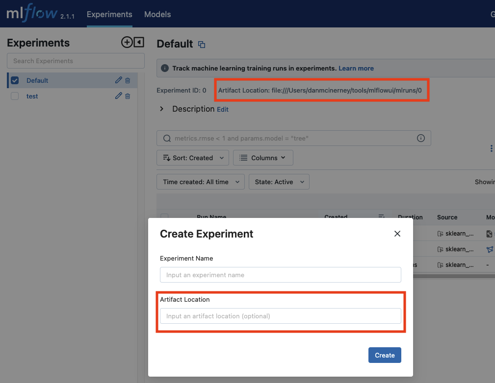 在创建实验时,它给了我们指定存储对象的目录这一选项。这似乎是一个可配置的文件路径,我们可以通过运行的示例实验就可以看到: