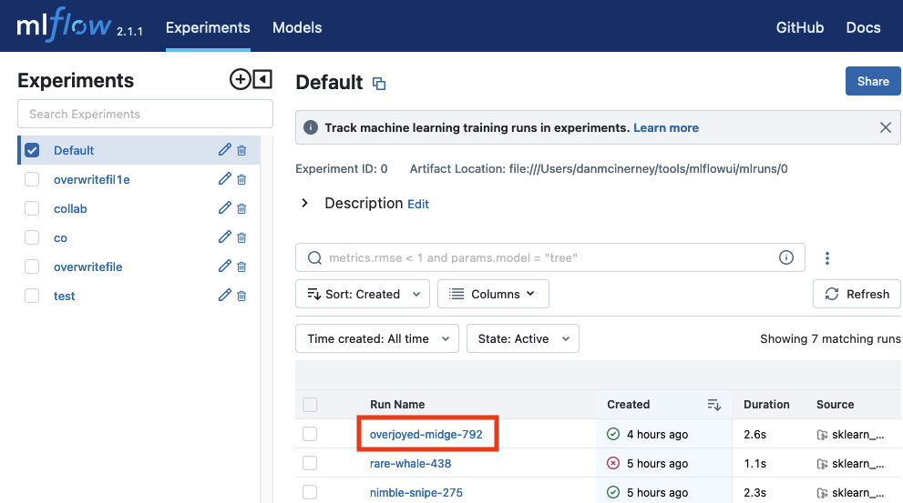 mlflow ui --host 127.0.0.1:8000
