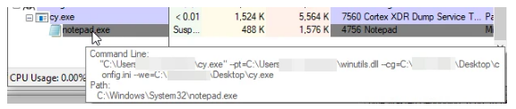 notepad.exe文件被注入到RtlTestBit的API调用线程中,该线程已被修复/挂起以跳转到恶意例程