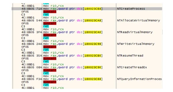 DarkLoader DLL使用 Direct SysCall API来选择几个但重要的调用,以避免API读取分析。解密后的BabLock勒索软件总是使用VMProtect进行反虚拟化。
