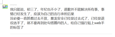 z继097师傅骂完之后,其中几位师傅出来解围说道她可能是年纪太小了,心智不成熟,再加上中考压力大,才这么不理智发言的,结果我们的097师傅就说自己压力不大,把所有人都骂了一遍