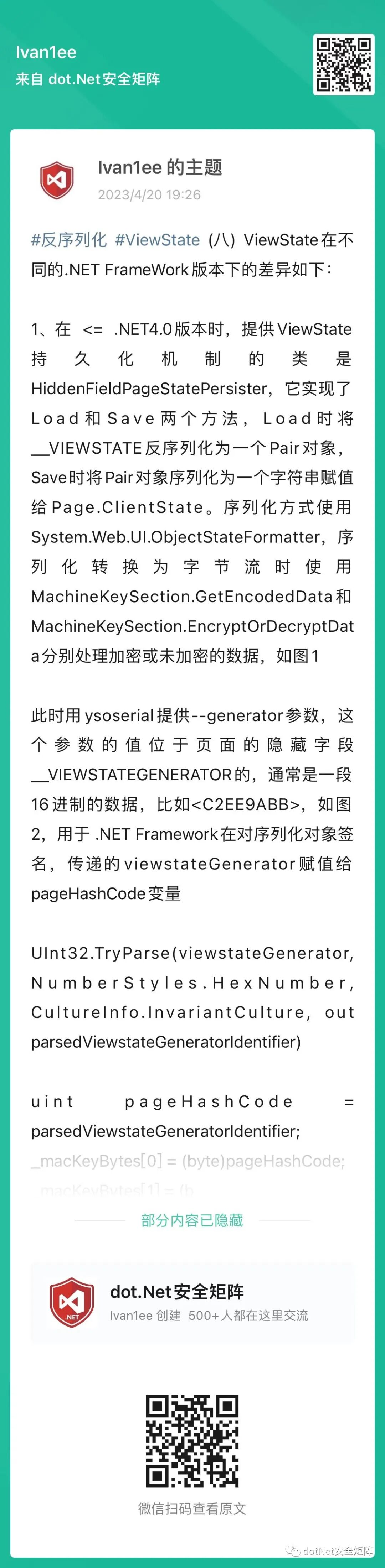 dotNet安全矩阵知识星球 — 聚焦于微软.NET安全技术,关注基于.NET衍生出的各种红蓝攻防对抗技术、分享内容不限于 .NET代码审计、 最新的.NET漏洞分析、反序列化漏洞研究、有趣的.NET安全Trick、.NET开源软件分享、. NET生态等热点话题、还可以获得阿里、蚂蚁、字节等大厂内推的机会