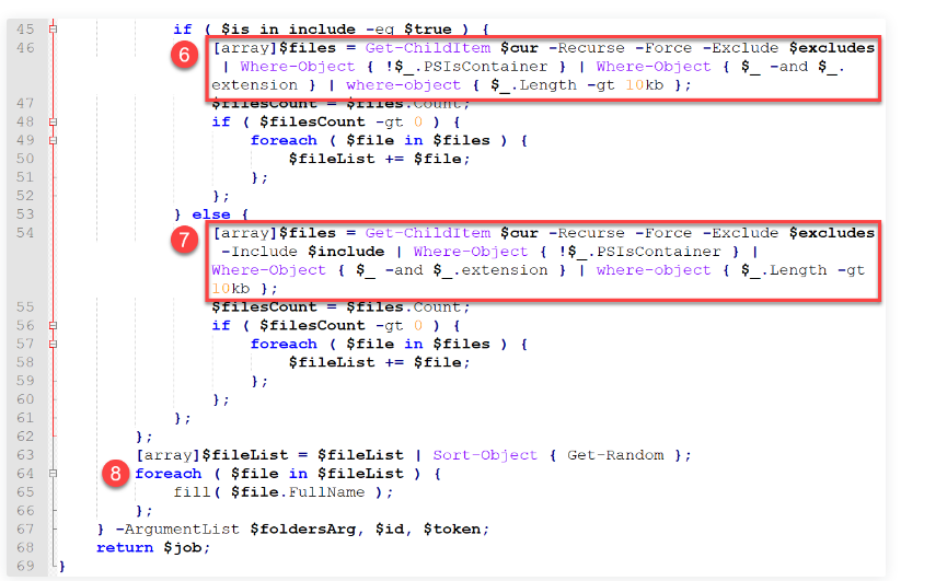 Vice Society的PowerShell数据窃取脚本是一个简单的数据窃取工具。使用多处理和排队来确保脚本不会消耗太多系统资源。然而,该脚本将重点放在文件扩展名超过10 KB的文件以及符合其包含列表的目录中,这意味着该脚本不会窃取不符合此描述的数据。