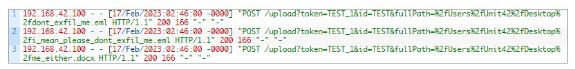 注意:这一点很重要,因为这意味着每个HTTP POST事件都将包括文件的完整路径。如果你能够通过此路径获得源主机的IP地址,那么你将能够在事后构建一个被窃取文件的列表。