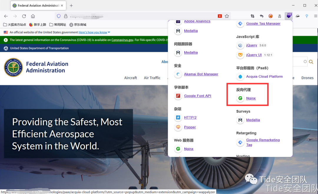 通过测试www.faa.gov站点发现该asp站点使用了Nginx反向代理,通过多地ping测试确定该站使用了CDN。