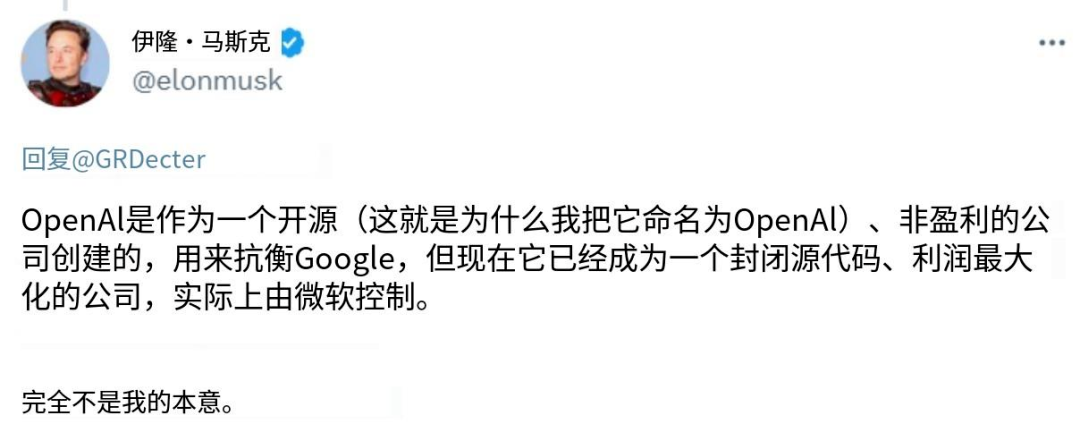 据马斯克,OpenAI初衷是非盈利、安全AI环境,捐助1亿美元。如今却成为追求利润的微软控制的闭源公司。马斯克失望、愤怒地反击,禁止OpenAI使用TW数据训练AI。时至今日,马斯克以实际行动对抗OpenAI,旨在实现原初愿景。