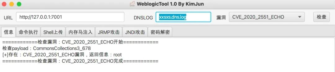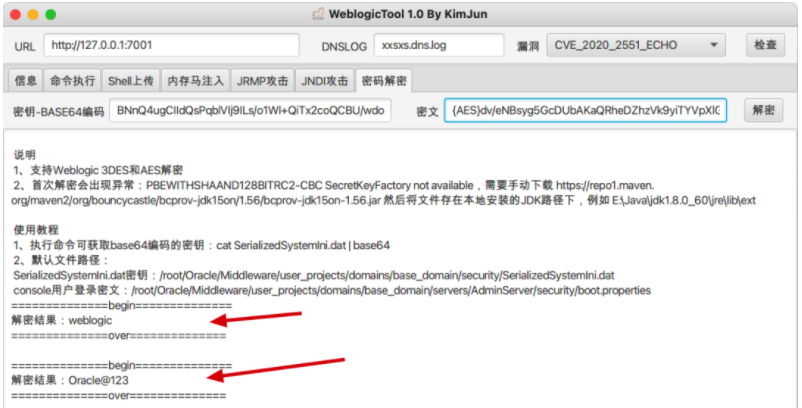 迫于目前现有的weblogic工具没怎么更新、payloay jdk适用版本等问题,所以基于superman18、sp4zcmd等项目,写一个weblogic工具,工具运行版本要求jdk 8,支持漏洞检测、命令执行、内存马注入、密码解密等(深信服深蓝实验室天威战队强力驱动)。
