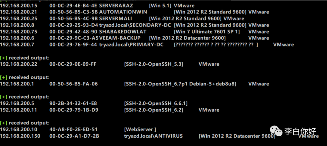 这个内网段机器不多,可以看出有域环境。接着进行了多网卡检测,web检测。