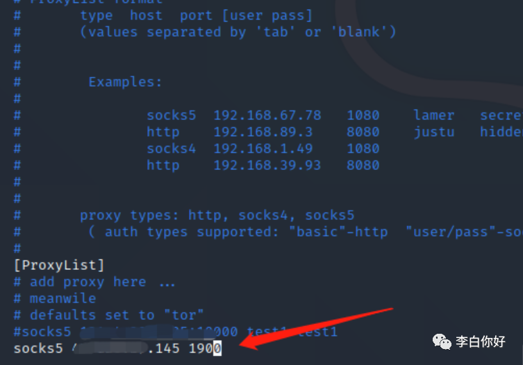 因为我们要用的是本地虚拟机里面的kali的MSF,kali的代理配置比较方便,先vim /etc/proxychains.conf ,在最下面加上代理