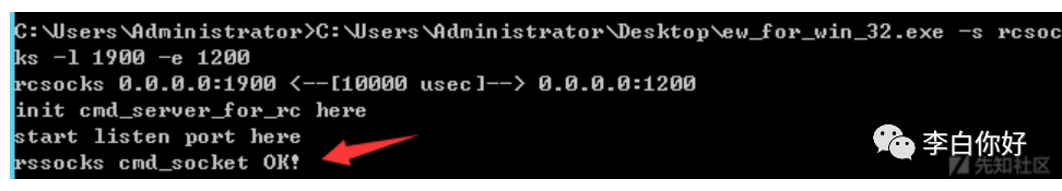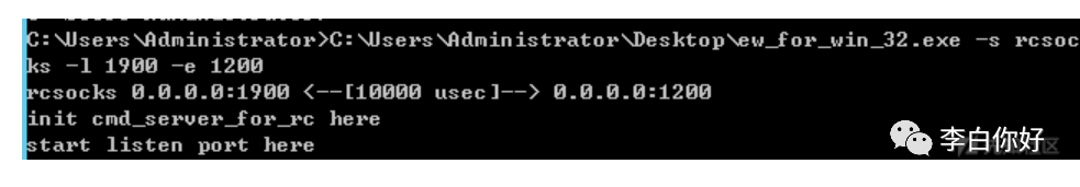 把ew文件丢上刚刚开的服务器,执行:ew -s rcsocks -l 1900 -e 1200来配置一个转接隧道,意思就是将1900端口收到的代理请求转交给反连1200端口的主机