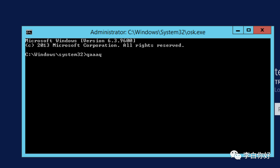 进入PE后,重命名cmd.exe为osk.exe将原来C盘中的\windows\system32\osk.exe给覆盖了,这样子在开机的时候打开屏幕键盘就会弹出SYSTEM权限的命令行。