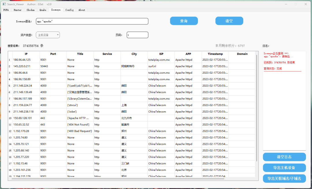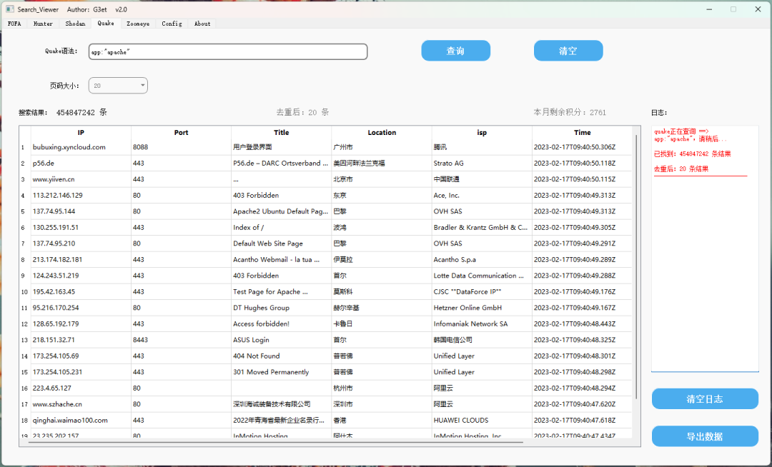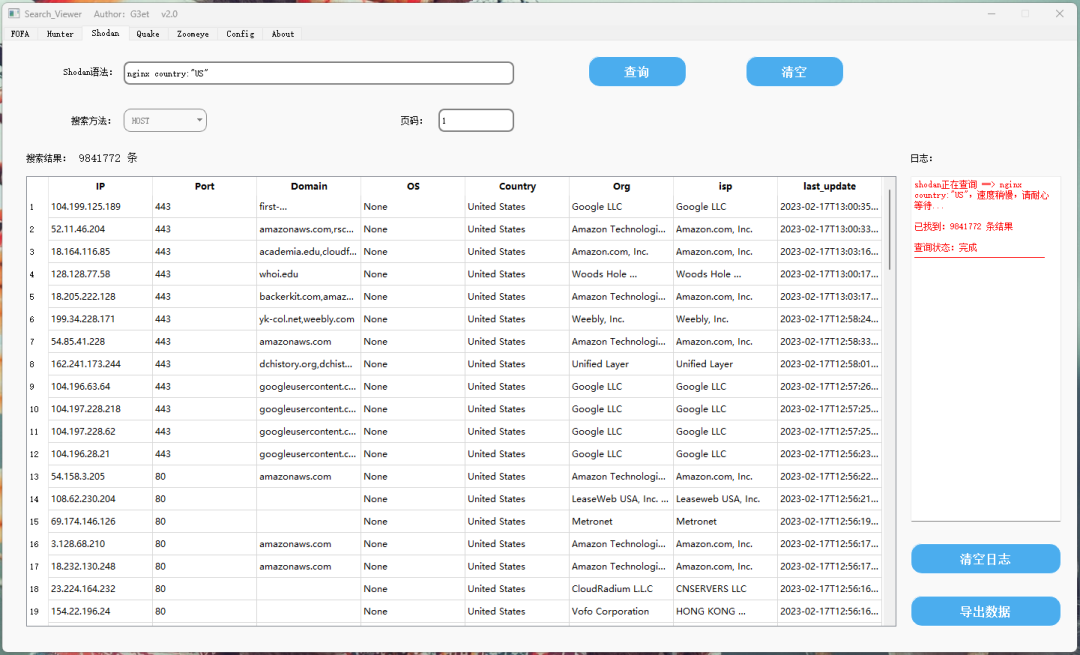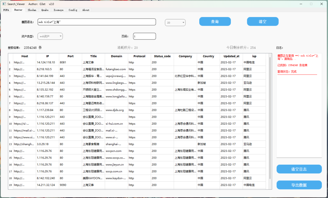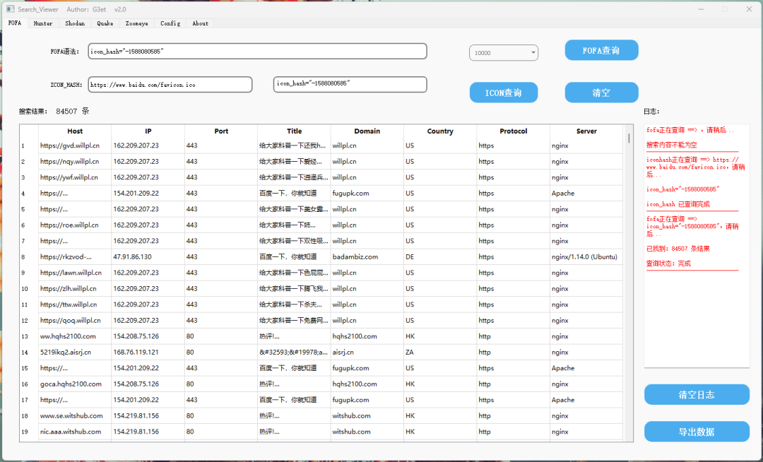 集Fofa、Hunter鹰图、Shodan、360 quake、Zoomeye 钟馗之眼为一体的gui图形界面化工具