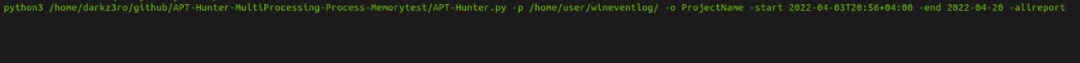 python3 APT-Hunter.py -hunt "psexec" -p /opt/wineventlogs/ -o Project2python3 APT-Hunter.py -huntfile "(psexec|psexesvc)" -p /opt/wineventlogs/ -o Project2