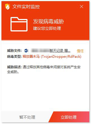 例如,国内杀毒软件厂商火绒发现,一种名为RdPack的病毒伪装成某热点明星私密聊天文件(XXXXX聊天记录曝光.exe),在微信群中大肆传播。该经安全人员分析发现,运行病毒后会释放并静默执行RdViewer远控软件,攻击者可通过RdViewer远控软件来操控受害者终端,并执行如文件窃取、监控麦克风和摄像头等恶意功能。