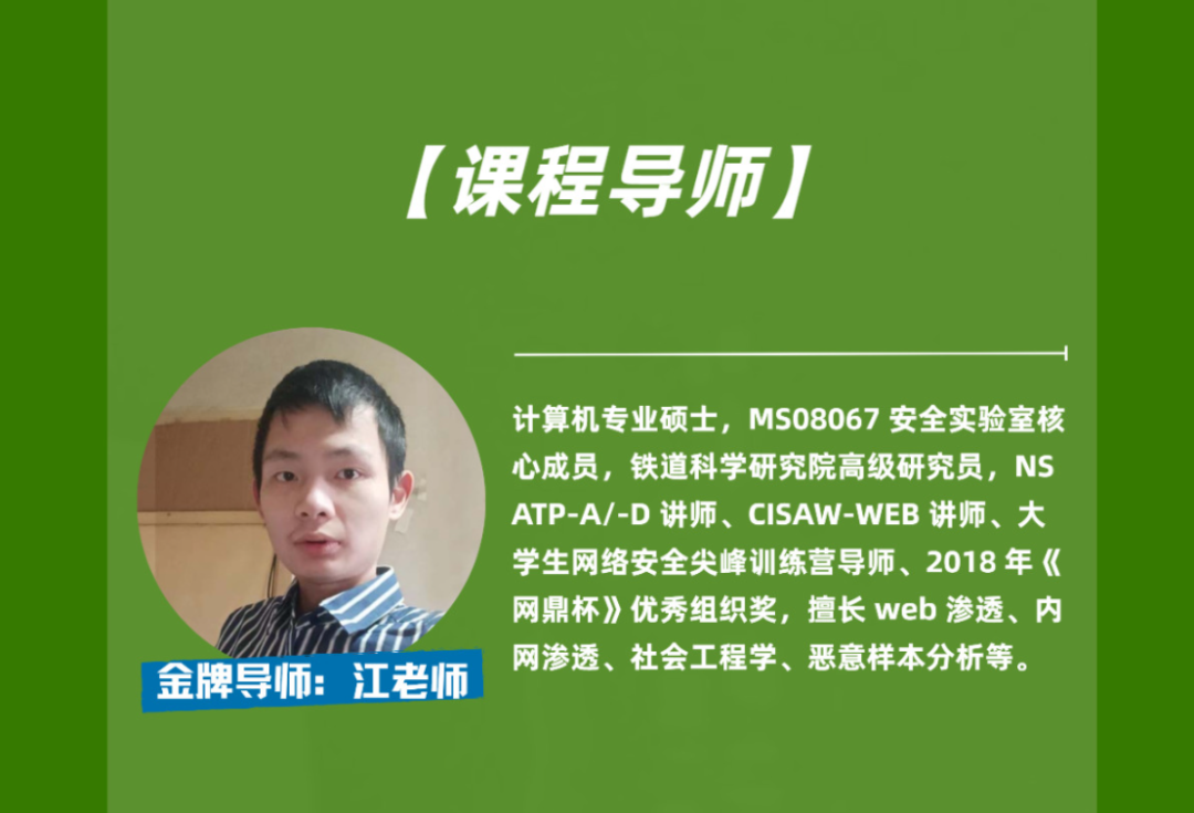 本课程从0基础开始讲解,面向的是安全工作领域中的学习者或者工作者(信息安全专业的学生、软件安全爱好者、软件逆向技术相关人员、反病毒工程师、免杀技术爱好者等),主要解决的需求是在安全工作中的红蓝攻防的对抗中需要钓鱼投放样本的时候如何做免杀,黑产等其他非法需求想要报班学习的请绕道!