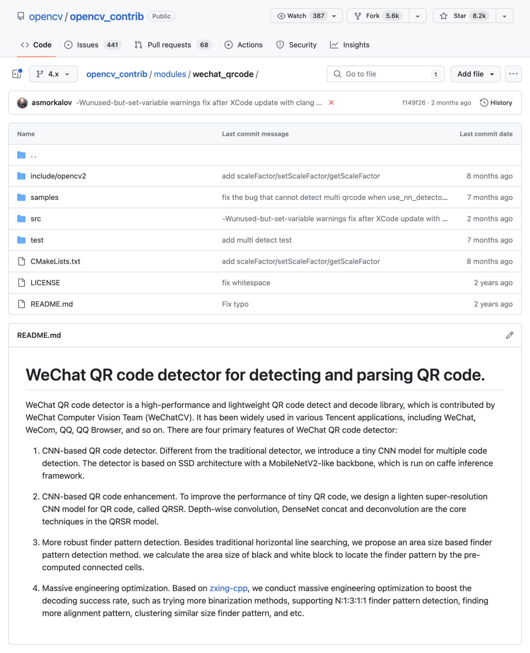 知乎有人发现这个二维码解析的库已经由微信作为开源项目贡献给了 opencv,可以在 GitHub 上找到对应的源码。