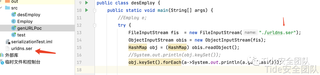 使用之前实验用的desEmploy.java反序列化urldns.ser,dnslog收到请求。