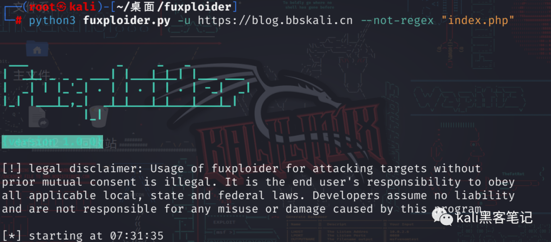 python3 fuxploider.py --url https://blog.bbskali.cn --not-regex "wrong file type"