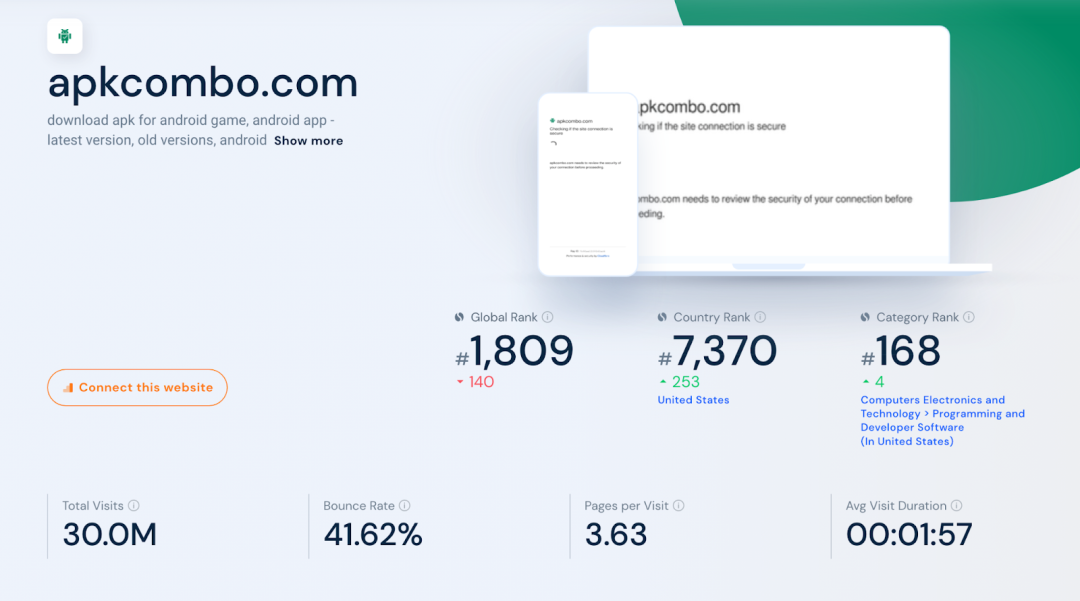 据数据统计站点 similarweb 统计,apkcombo 站点: