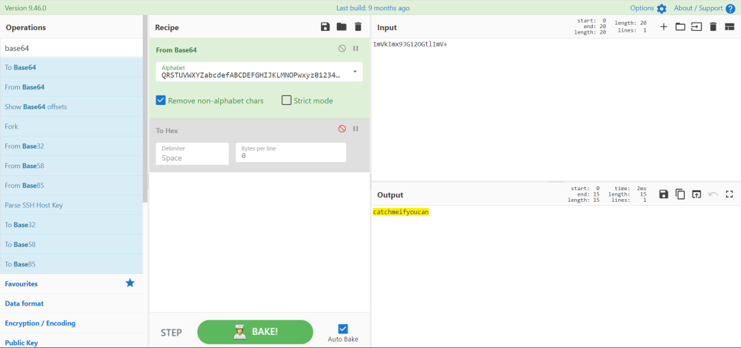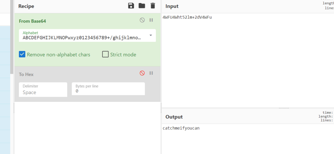 经过base64解码发现,其中一个是 catchmeifyoucan + id,一个是不可见的字符,而且刚好等于上面不可见字符的补集。