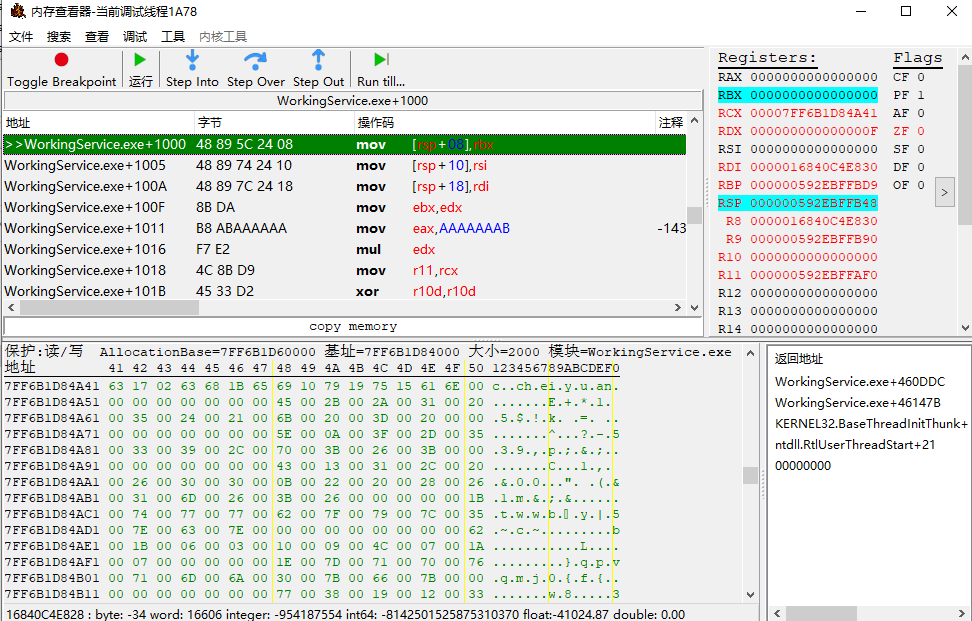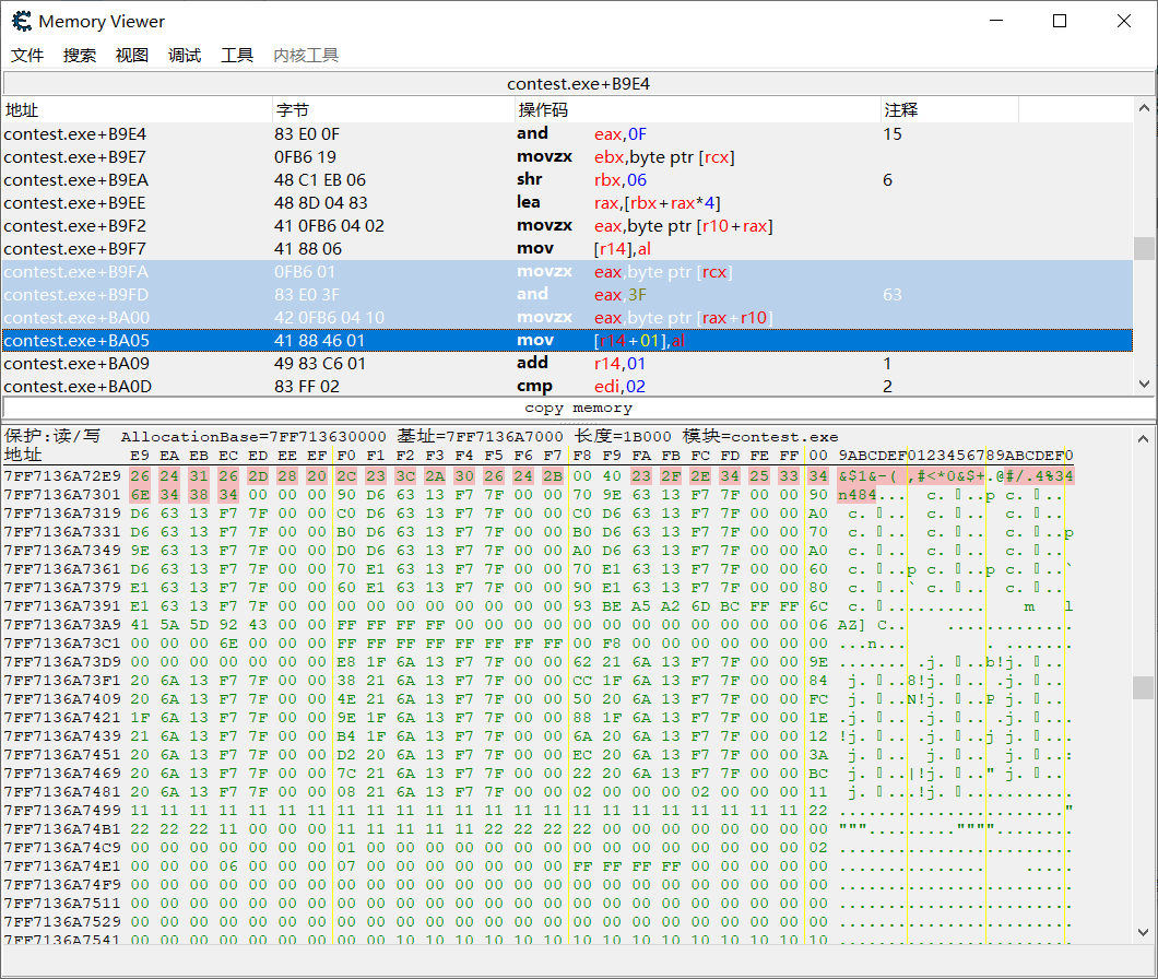 同样memory view查找 7FF713657190 地址,结果找到一串 base 表: