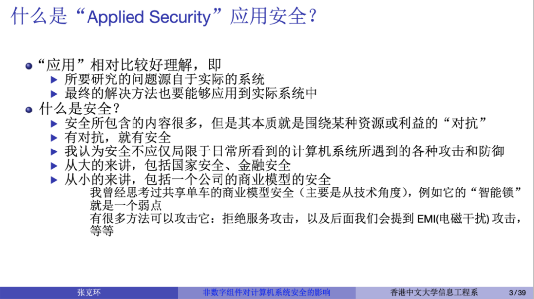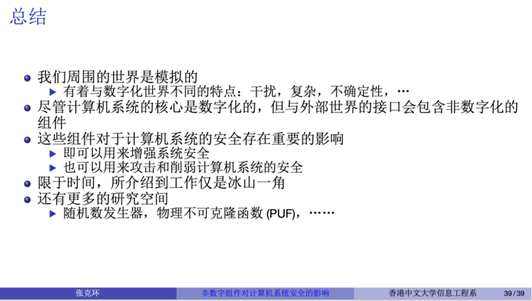 我们将对会议精彩报告进行内容回顾,本文分享的是香港中文大学信息工程系副教授张克环的报告——《非数字化组件对计算机系统安全的影响》。