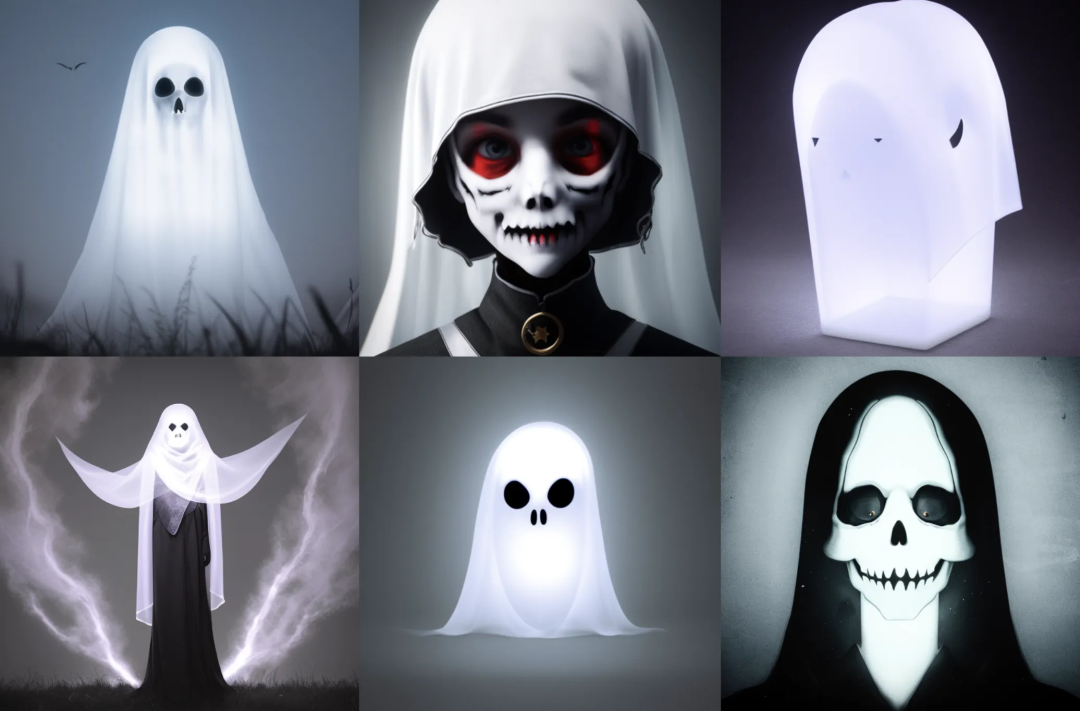 可见虽然最终效果不见得有 Dreambooth 那样精细,但是模型已经完全能够知道"Ghost"这个词的含义了。