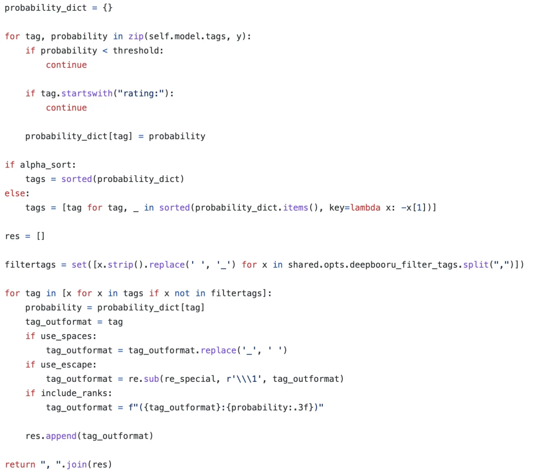 根据代码可知,本质上它就是把 self.model.tags 遍历一遍,并且通过阈值过滤以及排序给出来的一份 tags 列表。