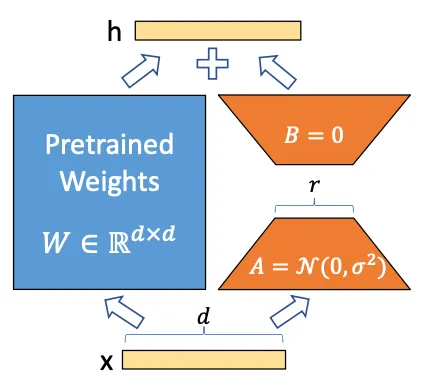 其实就是加速微调:通过“矩阵分解”的方式,只需要微调更少的参数。