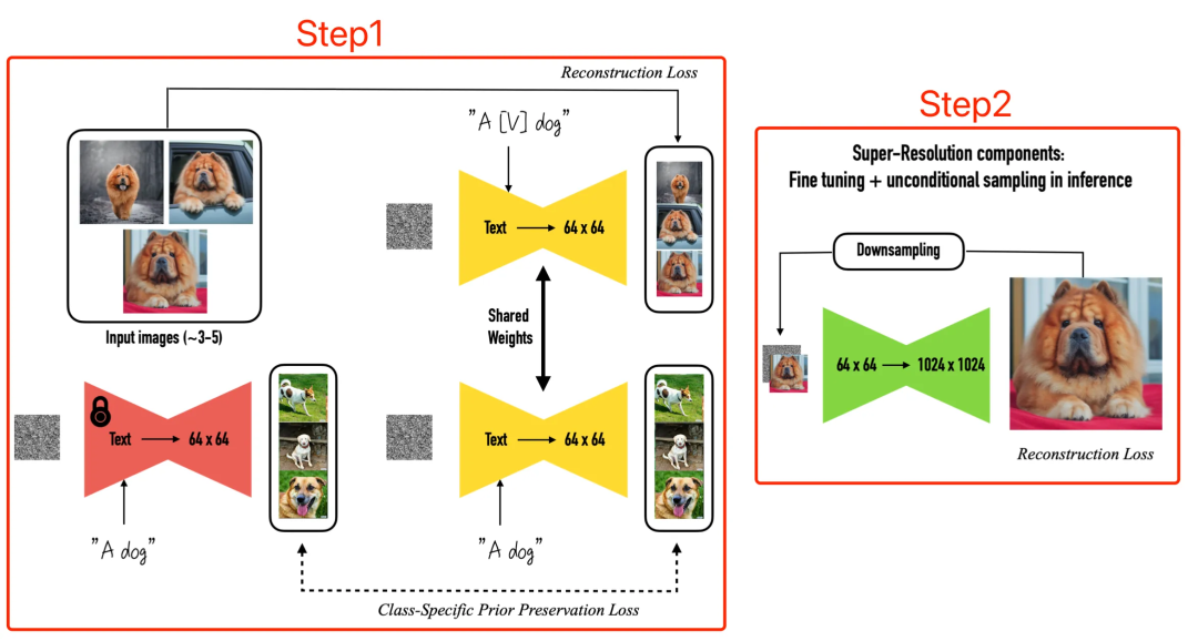 Step1: 通过图像-提示词的唯一标识符,来微调低分辨率模型