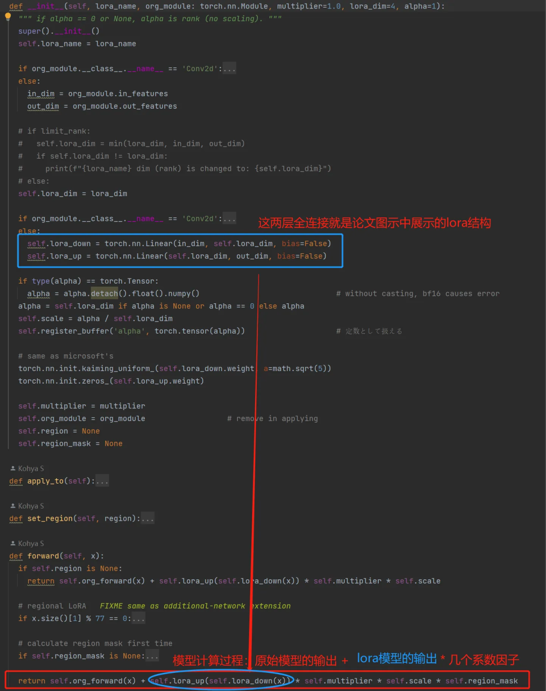 下面我们浅浅的看一下关键代码,模型脚本位置:lora-scripts/venv/Lib/site-packages/lycoris/locon.py