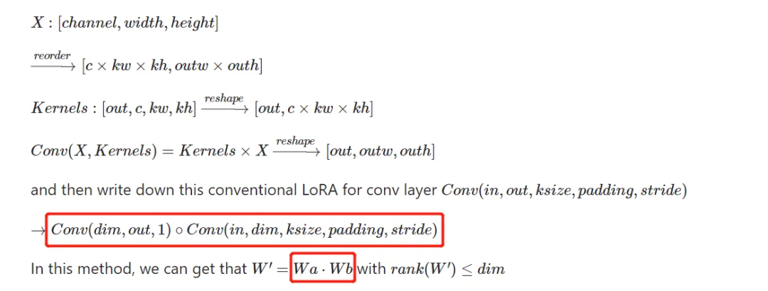 本质上是把 LoRA 的 2 层全连接替换成了带卷积结构的网络,最终该层输出为原始模型输出+卷积结构输出*一些因子。
