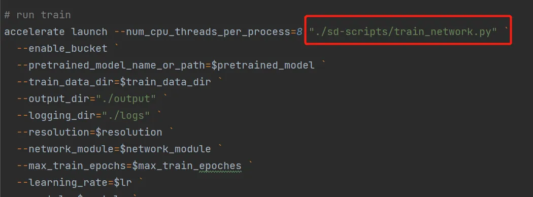 在lora-scripts/train.ps1中可以看出,实际调用的是lora-scripts/sd-scripts/train_network.py