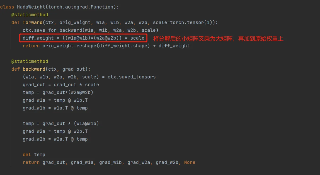 下面我们浅浅的看一下关键代码,模型脚本位置:lora-scripts/venv/Lib/site-packages/lycoris/loha.py