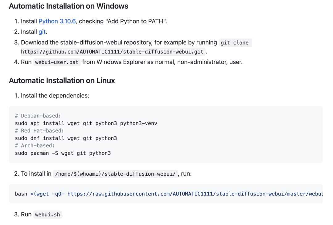 但是实际上,在 WebUI 的官方介绍中已经列举了安装步骤: