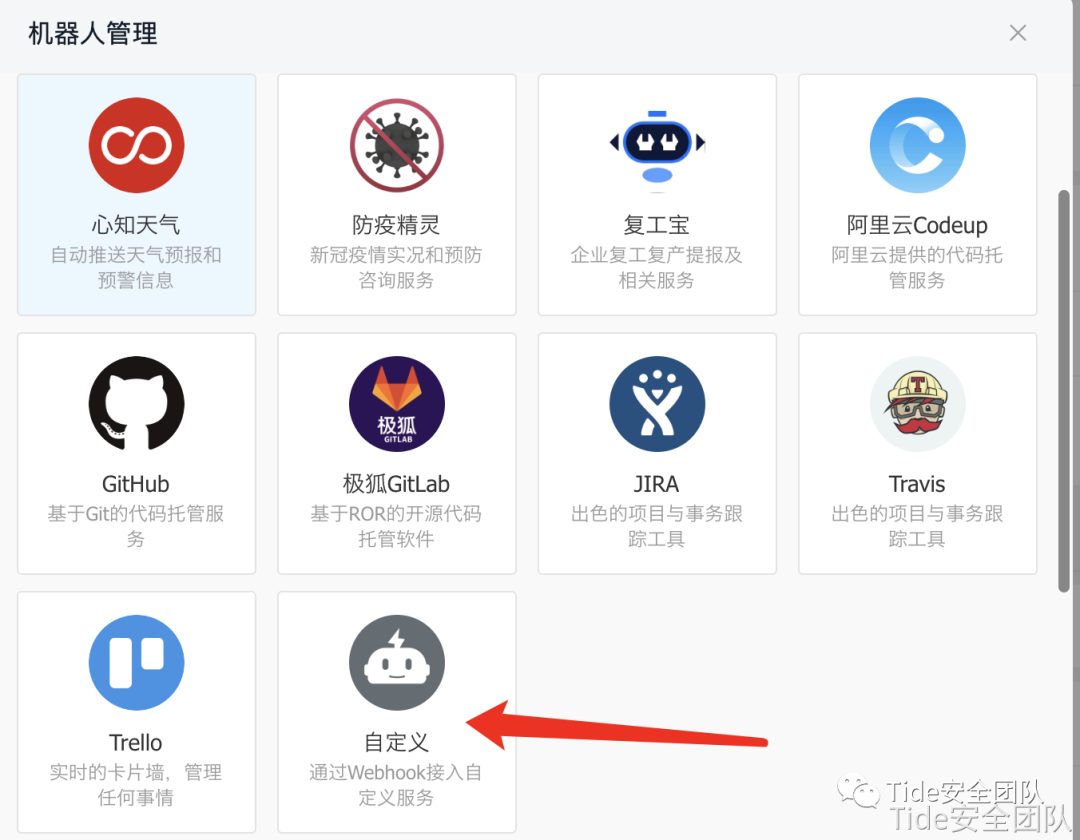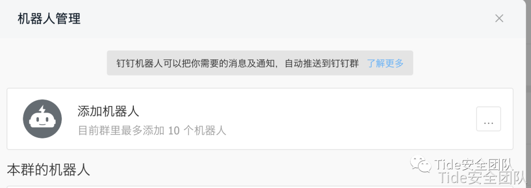 钉钉群和上述的方法基本相同,首先需要在钉钉中拉群一个群聊,并添加一个机器人: