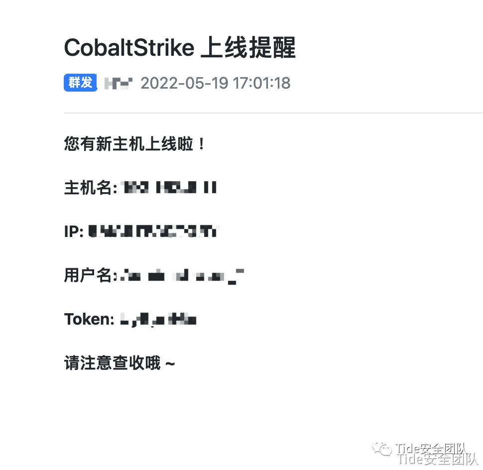 在实际攻防场景中,尤其是钓鱼中,我们不太可能一直保证CS在线,尤其是当网络存在波动,或者频繁的切换时。这时候就需要使用CS上线提醒。