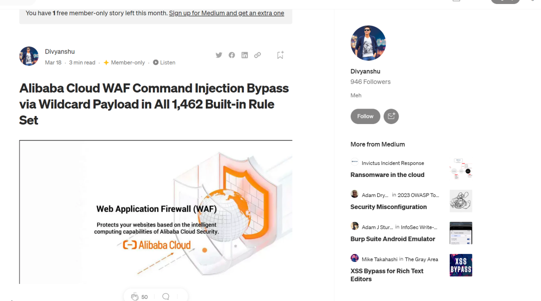 https://infosecwriteups.com/alibaba-cloud-waf-command-injection-bypass-via-wildcard-payload-in-all-1-462-built-in-rule-set-989b75db6e2f结果就在昨天,【安全女巫】推送了一份交流会的海报。