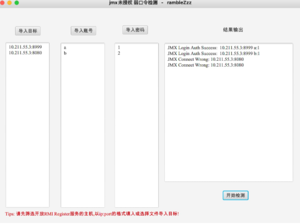 jmx未授权访问 弱口令批量检测 GUI工具。