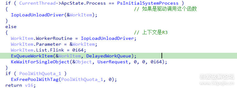 复制代码 隐藏代码ExpWorkerThread -> IopLoadUnloadDriver -> IopLoadDriver -> DriverEntry