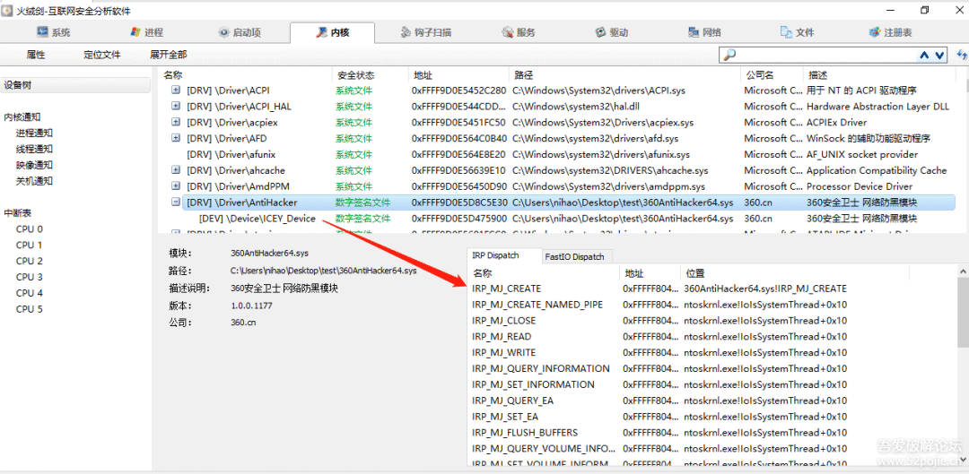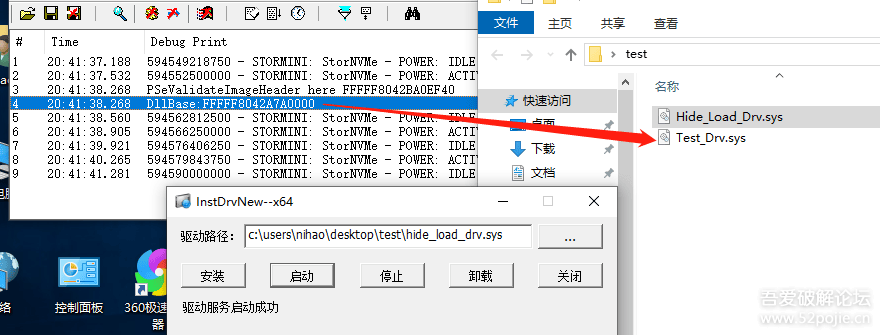 将 Test_Drv.sys 伪装成 360AntiHacker64.sys 。